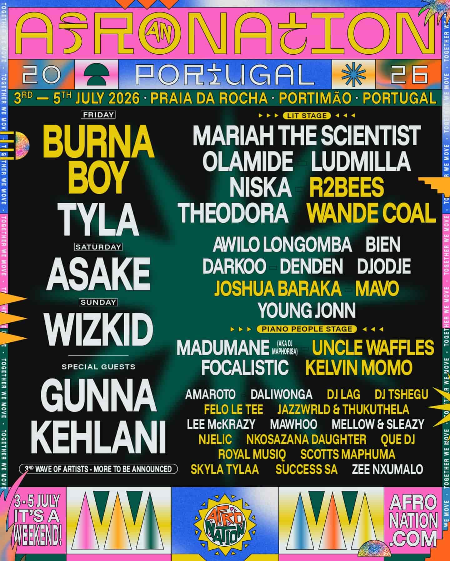 2026 lineup: Burna Boy, TYLA, Asake, Wizkid, Gunna, Kehlani, Darkoo, Olamide, DJ Lag, Mariah The Scientist & many more.
