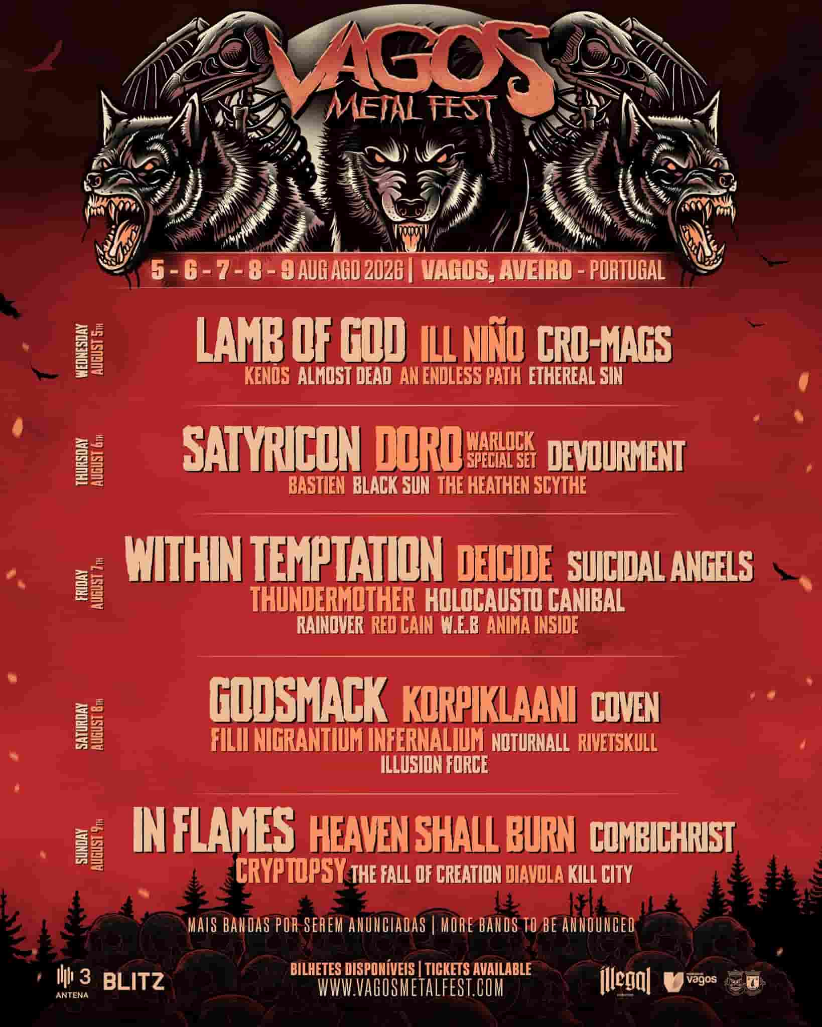 2026 lineup: Lamb of God, Within Temptation, Godsmack, In Flames, Heaven Shall Burn, Deicide, Suicidal Angels & many more.
